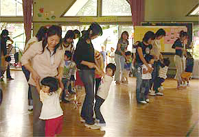 園長先生(幼児体育指導者)と、親子でふれあい体操をしました。 -